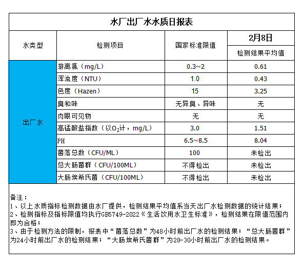 水廠出廠水水質(zhì)日報表(2025-2-8)