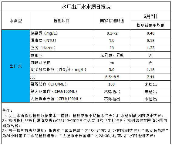 水廠出廠水水質(zhì)日報表(2025-6-7)