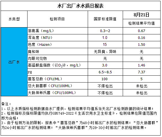 水廠出廠水水質(zhì)日報(bào)表(2025-8-21)