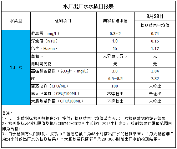 水廠出廠水水質(zhì)日報表(2025-8-28)