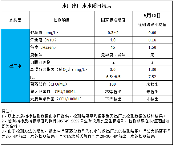 水廠出廠水水質(zhì)日報表(2025-9-18)