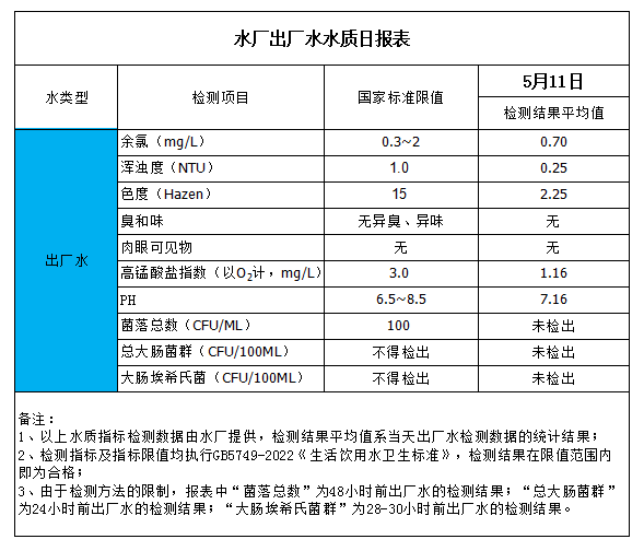 水廠出廠水水質(zhì)日報(bào)表(2023-5-11)
