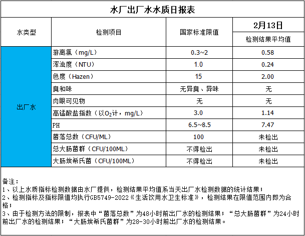 水廠出廠水水質(zhì)日報表(2024-2-13)